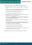 • Letting agents/landlords will not handover keys of a property until both the security deposit and the first month’s rent have reached their accounts. • In Ireland there is no legal requirement for a landlord to provide a tenant with a lease (otherwise known as a contract or fixed term agreement) neither is there an obligation on a tenant to sign a lease if they do not wish to do so. • Lease agreements are generally signed at Check in by the tenant and then forwarded to the landlord to countersign. • Please note that a break clause has not been a standard in Ireland for the last number of years, we no longer request this as generally the agents would not accept. Please advise if we are to request a Diplomatic break clause in the lease agreement.